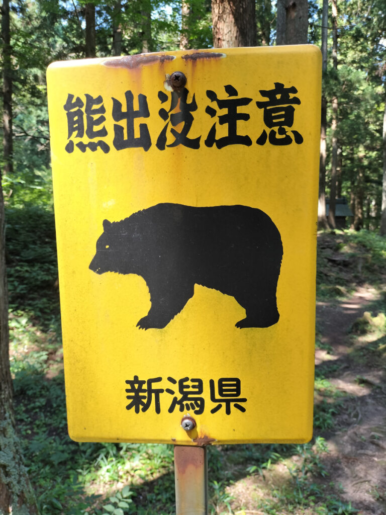 登山口に着くと、いきなり「熊出没注意」の看板がドーン🐻