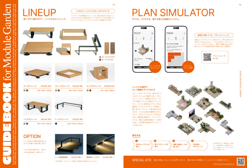 1マス約90㎝のデッキモジュールとフレームをパズルのように並べ替えて自分好みにカスタムできます