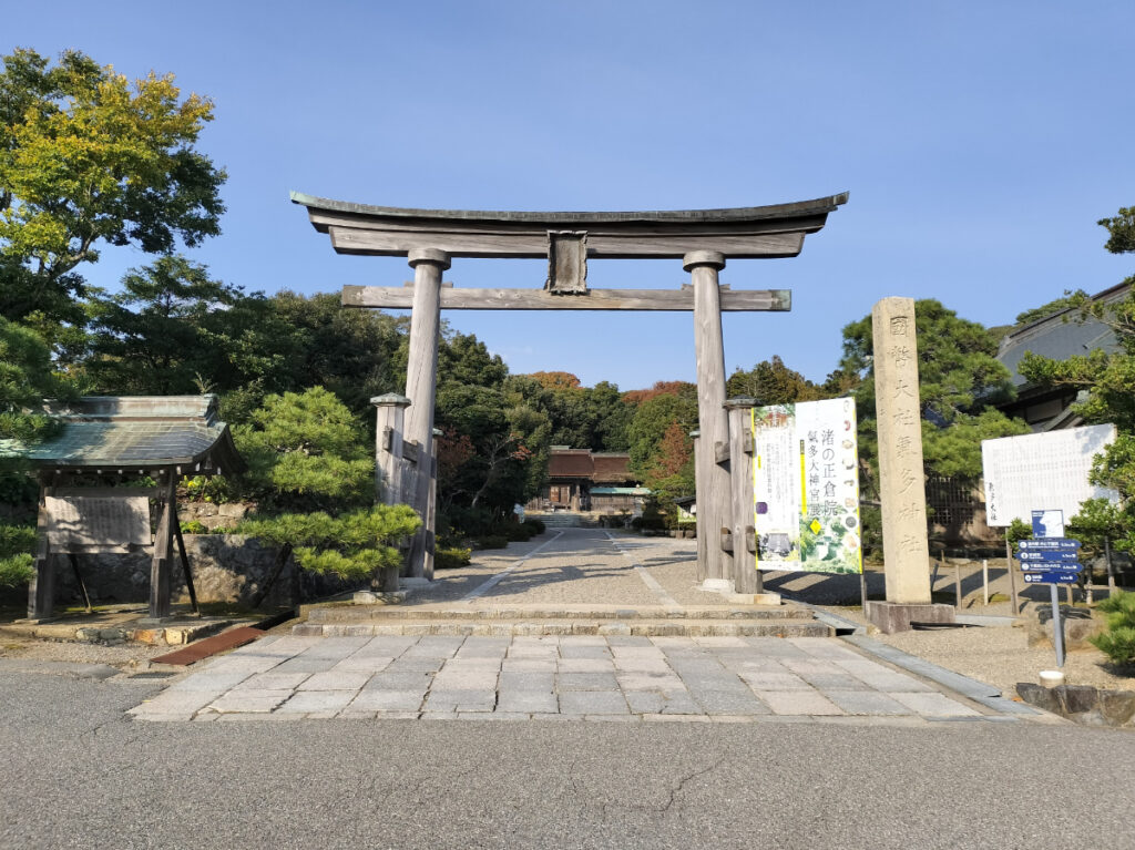 キャンプ地の石川県羽咋市に無事到着、まずは能登一の宮・氣多大社でお参り。