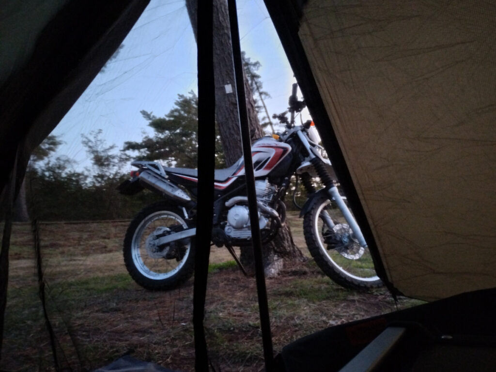 本当は焚火を眺めながらキャンプを楽しみたかったのですが、バイク旅は積載との闘い。