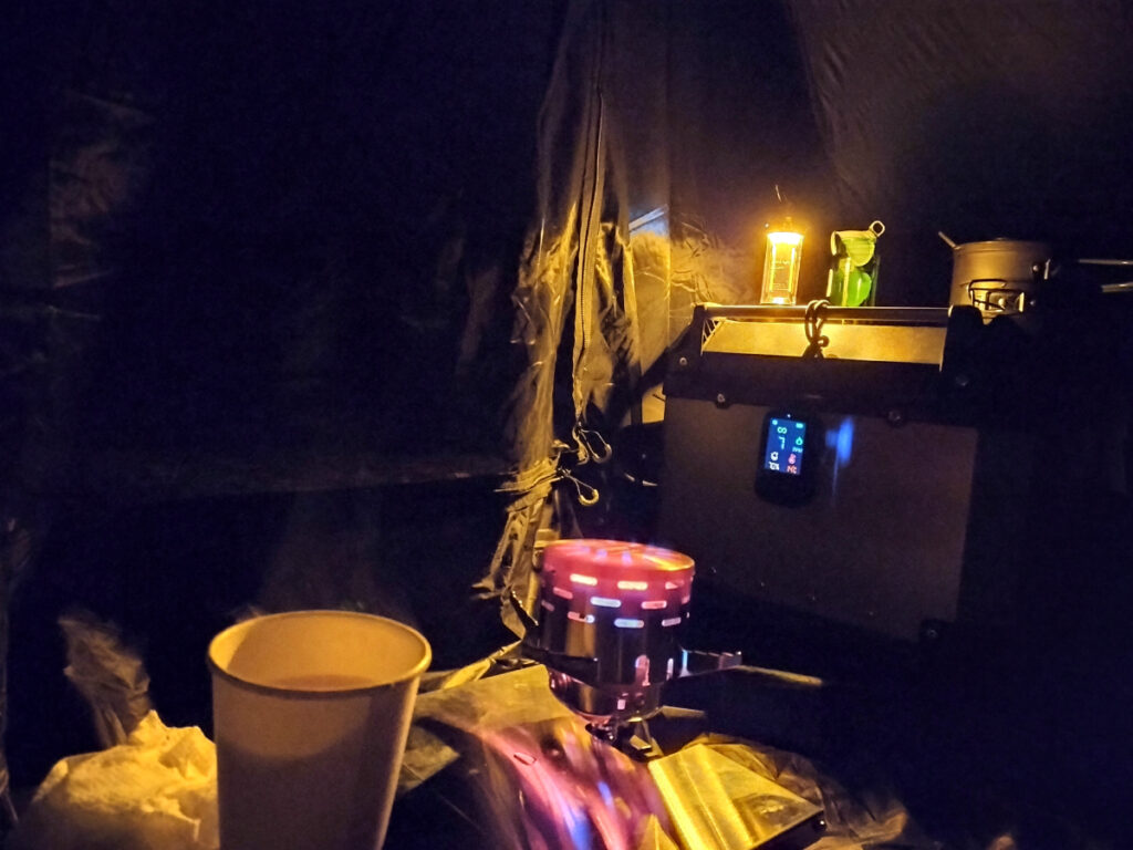今回は焚火はあきらめて、おこもりスタイルに徹します。