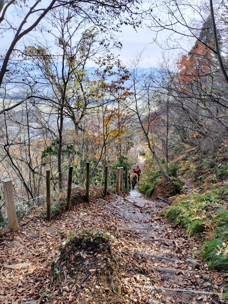整備された登山道は歩きやすく気温も低いせいか、体力的にも以前に登った夏の角田山よりもずいぶん楽に感じられました。
