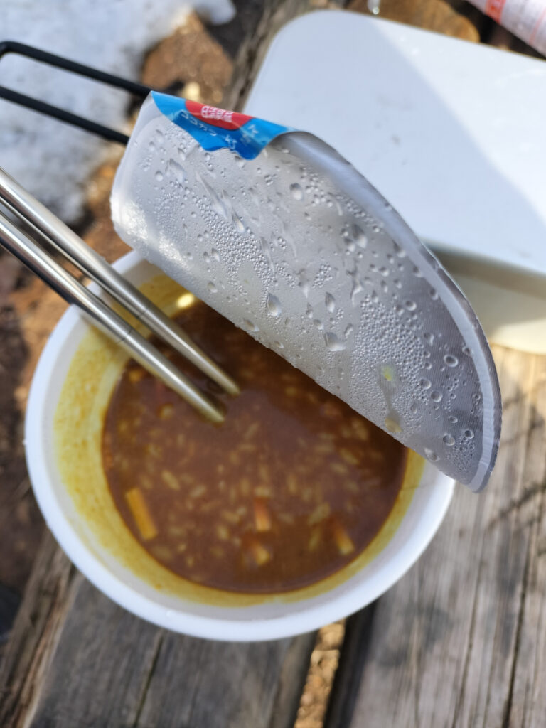 この日はシーフードカレーめし。山の上であたたかいご飯を食べられるだけで、なんだか特別なご褒美のように感じます。
