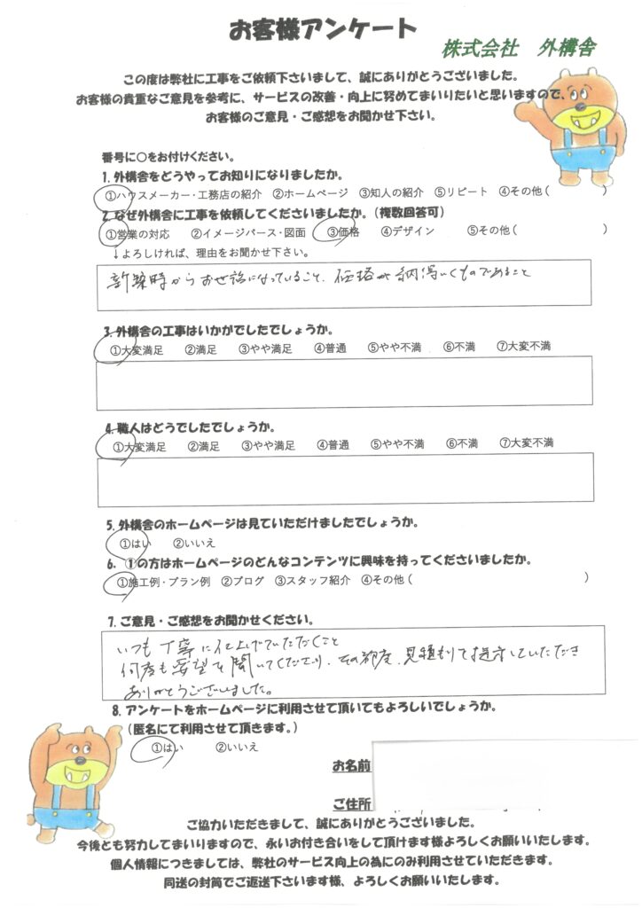弊社では工事完了後にお客様にアンケートにご協力いただいております。