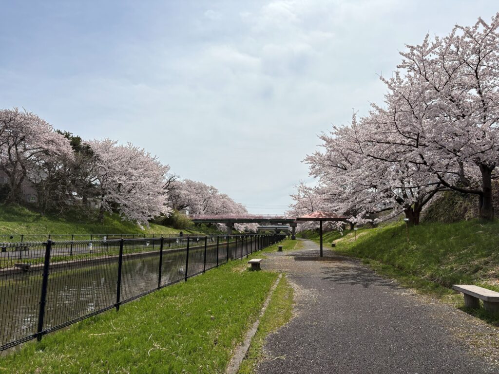 現場に行く道中で桜がきれいなスポットを見つけたので、帰り道に寄ってプチお花見をしました🌸